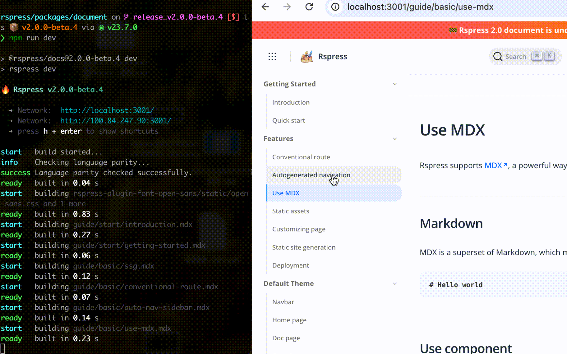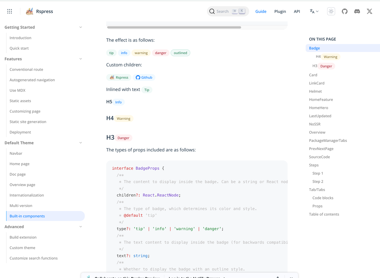 rspress ejectfeature is still in testing, and we’ll continue improving the documentation and providing more good customization examples.5. Improved Documentation Reading Experience 📖