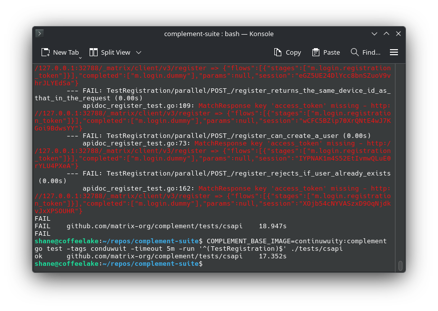 pull from: gamesguru/continuwuity:guru/fix/first-time-registration-and-Matrix-Complement-Test-Suite